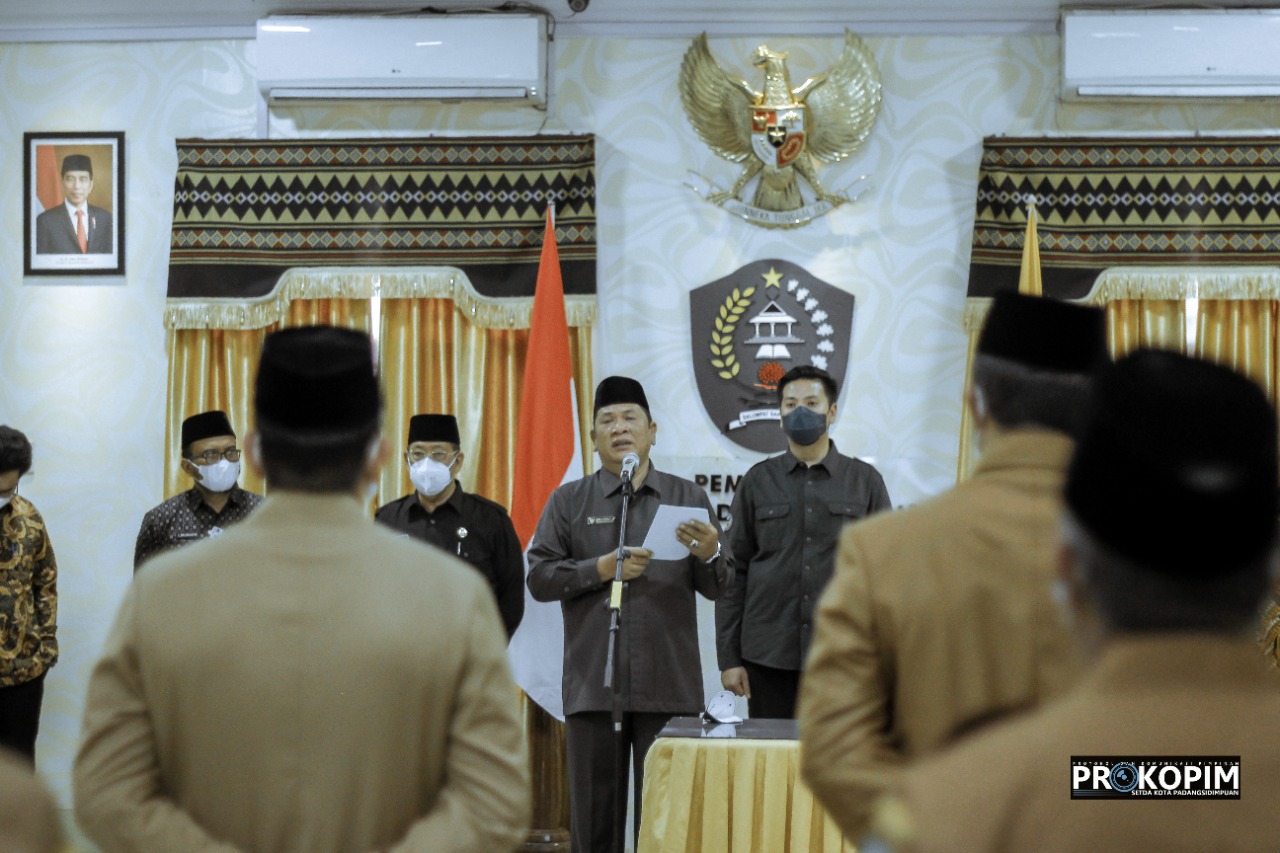Wali Kota Padangsidimpuan Irsan Efendi Nasution SH saat melantik 23 Pejabat dilingkup Pemko Padangsidimpuan di aula Kantor Wali Kota, Jum’at (27/08/21). (Foto:Ty)