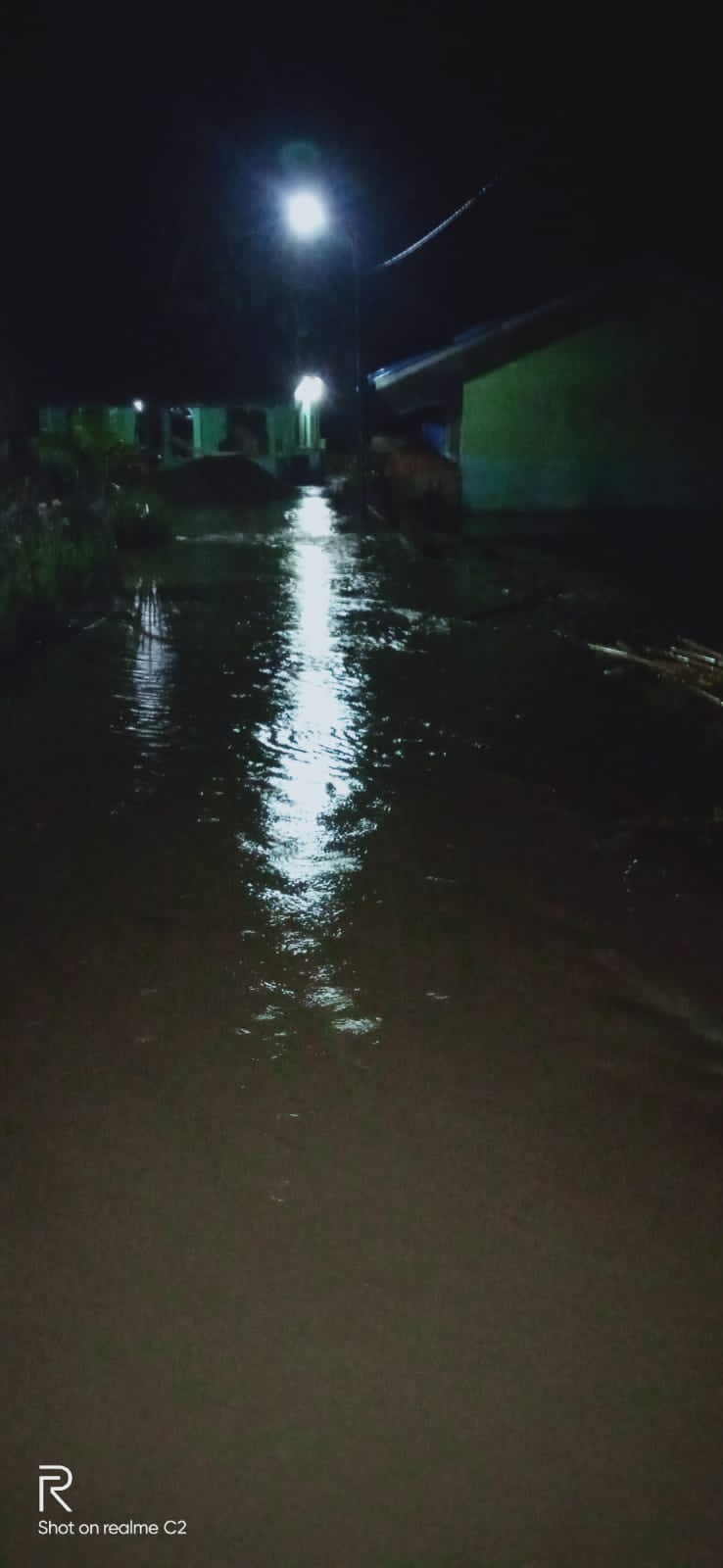 Desa Batang Gadis Jae Kecamatan Panyabungan Barat dilanda banjir, Jum’at malam (31/12/21). (Foto:MS)