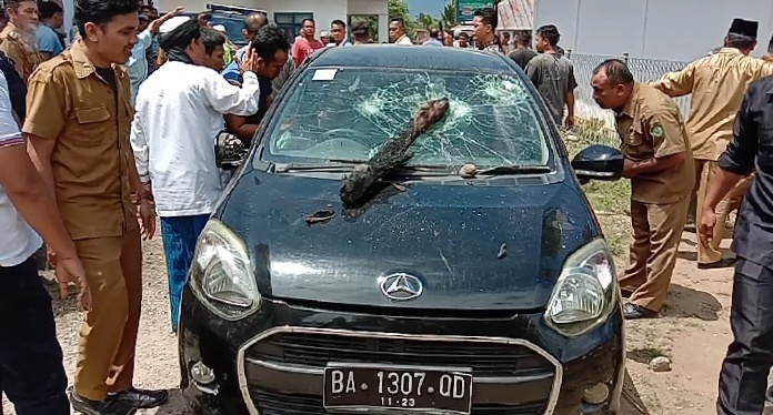 Kompol Hamonangan menambahkan, “bahwa tadi juga sempat ricuh, emosi masyarakat tak terelakkan karena massa melihat guru pengajian tersebut hadir di kantor Camat yang mengakibatkan massa merusak satu unit mobil yang ditumpanginya dan mengalami luka dibagian kepala dan tangan dari pecahan kaca mobil,” jelasnya.