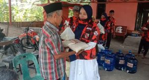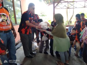 Ketua MPO MPC PP Madina saat menyerahkan bantuan sembako kepada salah satu warga, Kamis (16/04). (Foto:MS)