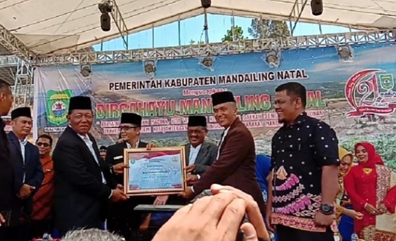 “Pemberian penghargaan ini di berikan kepada bupati Madina, karena beliau telah membangun atau menyiapkan fasilitas umum yaitu Taman Raja Batu blok C sebagai tempat pameran pembangunan HUT Madina ke 21.”