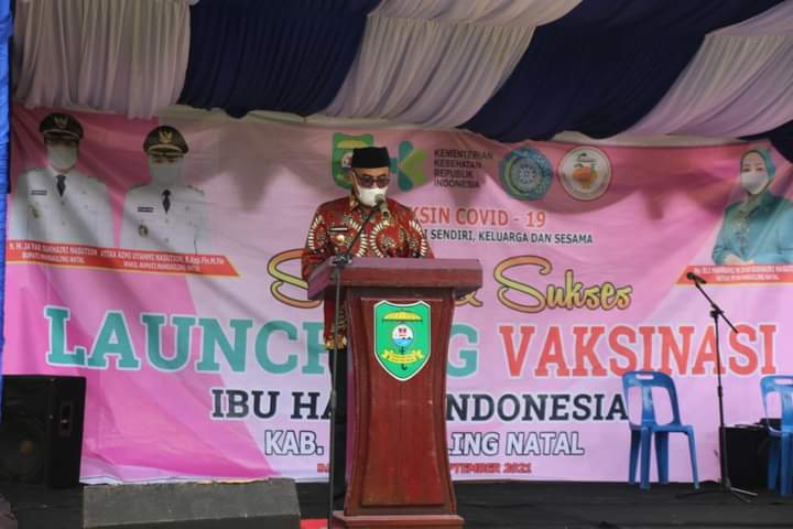 Bupati Madina Sukhairi Nasution saat launching vaksinasi untuk Ibu Hamil dilapangan kantor Bupati lama. (Foto: istimewa)
