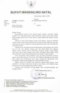 Dimana isi surat tersebut adalah untuk menindaklanjuti laporan Pemkab Madina kepada Presiden RI Joko Widodo sewaktu kunjungan ke Mandailing Natal bahwa berbatasan dengan tanah lokasi kantor Bupati terdapat tanah Dirjen Sumber Daya Air yang dikelola Balai Wilayah Sungai Sumatera II.