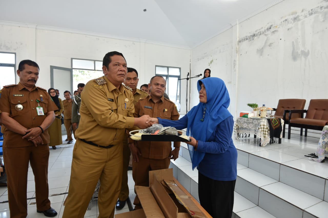Walikota Irsan Efendi Nasution,SH saat menyerahkan langsung peralatan Bordir kepada Pelaku UMKM. (Foto:Ty)