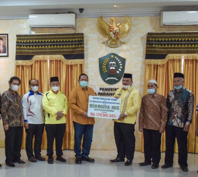 “Kepada panitia Pembangunan Masjid, bantuan ini kami serahkan agar kiranya progres pembangunan masjid yang kita banggakan ini dapat rampung sesuai jadwal,” sebut Wali Kota.
