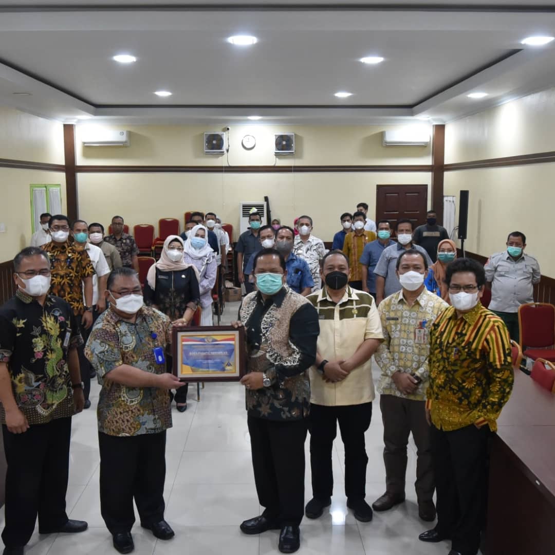 Penghargaan diserahkan Kementerian Keuangan melalui Kepala KPPN Padangsidimpuan Refenalria Anwar kepada Wali Kota Padangsidimpuan Irsan Efendi Nasution,SH, di aula Kantor Wali Kota Padangsidimpuan Jum’at 26 November 2021.