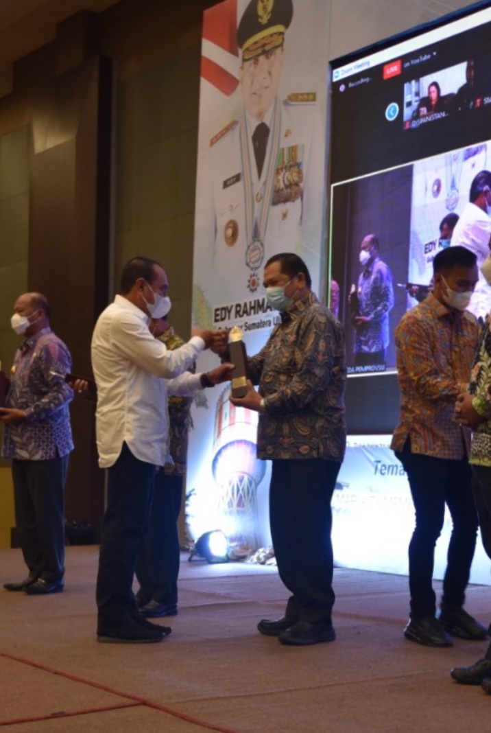 Penghargaan untuk Pemko Padang Sidimpuan diberikan langsung Gubernur Sumut Edy Rahmayadi pada saat membuka Musyawarah Perencanaan Pembangunan (Musrenbang) Penyusunan Rencana Kerja Pemerintah Daerah (RKPD) Provinsi Sumatera Utara di Hotel Santika Diandra, Kamis (8/04/2021).
