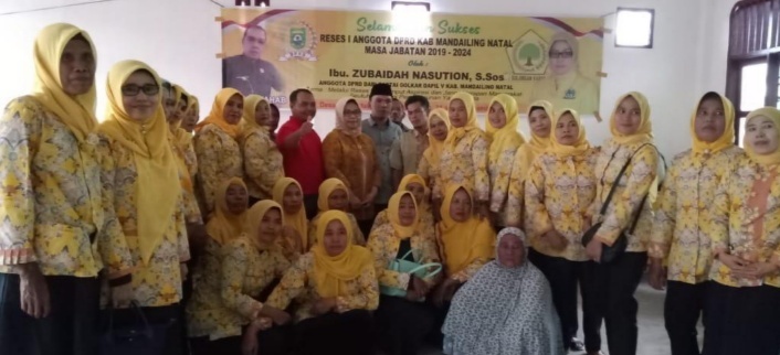 Amatan bbnewsmadina.com, Reses 1 Zubaidah politisi Partai Golkar ini di hadiri para kepala desa, tokoh masyarakat, kaum ibu dan naposo bulung dari Kecamatan Nagajuang dan serta anggota Kesatuan Perempuan Partai Golkar (KPPG) Madina.