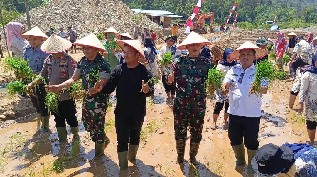 Program penanaman padi cetak baru ini mendapat dukungan penuh dari TNI-Polri dan Forum Pimpinan Kecamatan Kotanopan. Kehadiran mereka bukan hanya sebatas seremonial, tapi juga wujud komitmen untuk memulihkan lingkungan sekaligus meningkatkan ketahanan pangan di daerah tersebut.