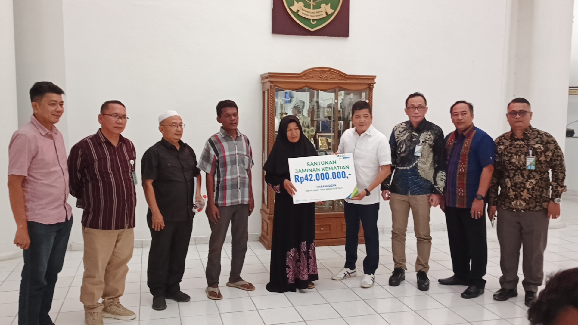 Pada kesempatan ini juga, Ketua DPRD Madina Erwin Efendi Lubis menyerahkan santunan Jaminan Kematian kepada penerima manfaat sebesar Rp. 42. Juta yang disalurkan oleh BPJS Ketenagakerjaan. (DN)