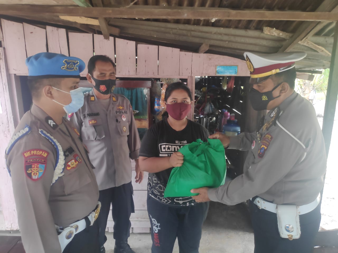 Paket sembako yang disalurkan ini dari kegiatan Baksos Alumni Batalyon Wicaksana Laghawa Akpol 2002 dengan thema “Bhakti Kami Bagi Ibu Pertiwi”.