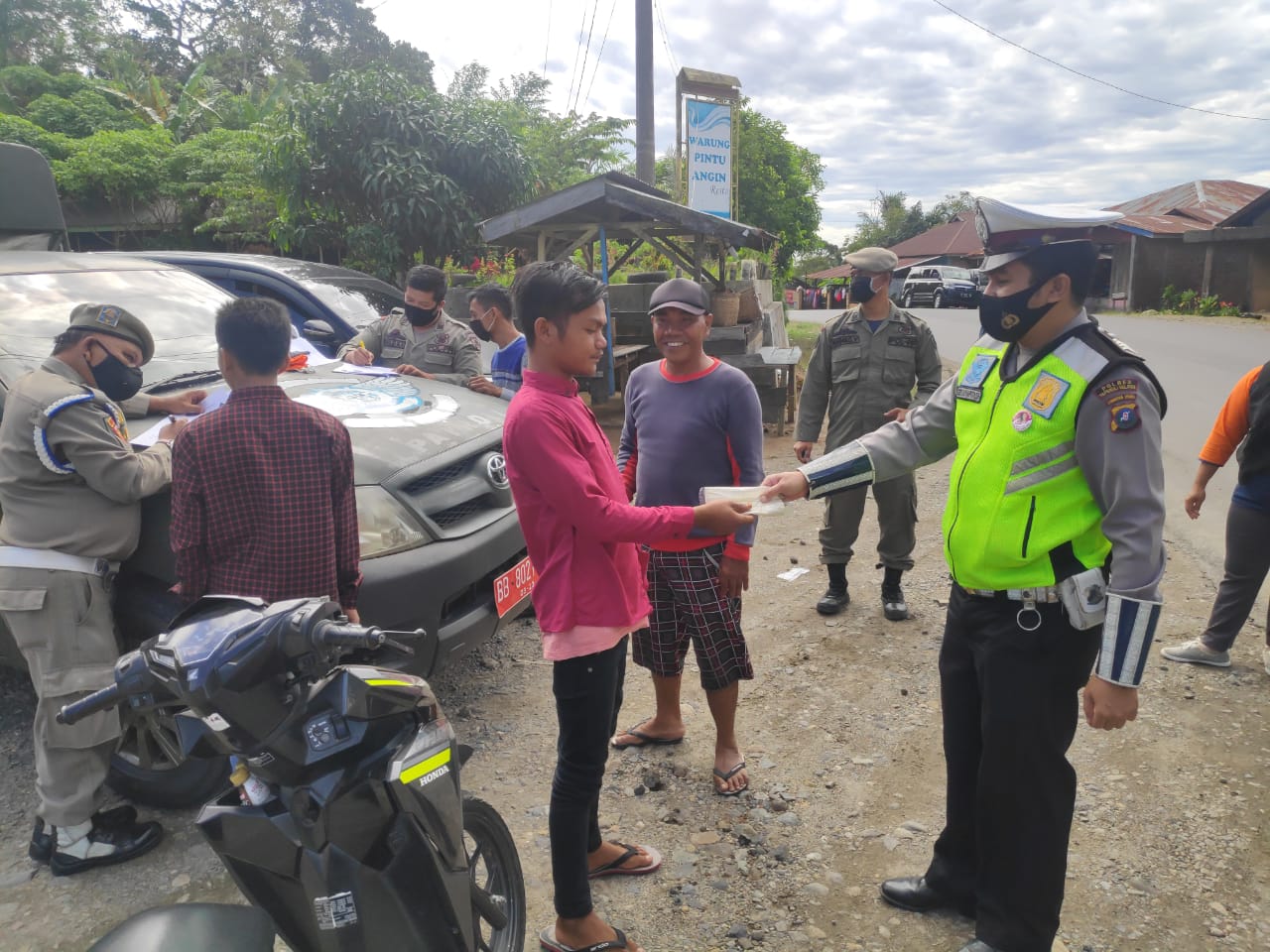 DIlokasi tim operasi juga memberikan himbauan kepada masyarakat yang melintas di Jalinsum Desa Parsalakan supaya selalu mematuhi Protokol Kesehatan dalam kegiatan sehari-hari.