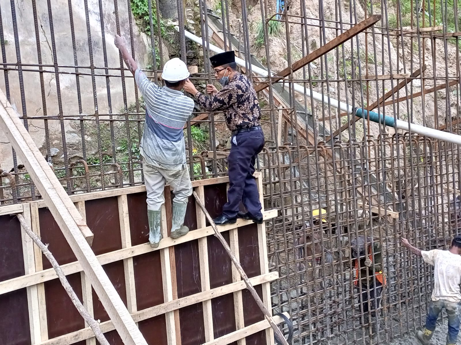 “Bukan lagi pemandangan yang aneh jika tadi saya sempat memanjat besi penyangganya, itu saya lakukan hanya untuk melihat atau memastikan langsung pembangunannya apa sudah sesuai dengan yang diharapkan.”