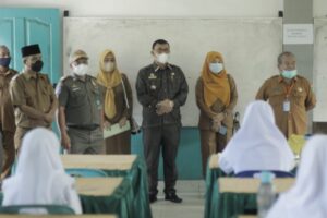 Kadis Pendidikan Kota Padangsidimpuan saat meninjau PTM di salah satu sekolah di Kota Padangsidimpuan, Senin (06/09/21). (Foto:Ty)