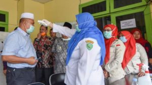 Para undangan Rapat dicek Kesehatannya sebelum memasuki ruang rapat oleh Petugas Kesehatan.