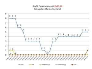 Berdasarkan peta sebaran Covid-19 yang dirilis oleh GTPP Covid-19 melalui Dinas Kominfo Kabupaten Mandailing Natal mengalami peningkatan, dalam keterangannya ada Orang Tanpa Gejala (OTG) yang merupakan Pelaku perjalanan dari Tangerang Banten, dan saat ini telah berada di RSU Panyabungan.