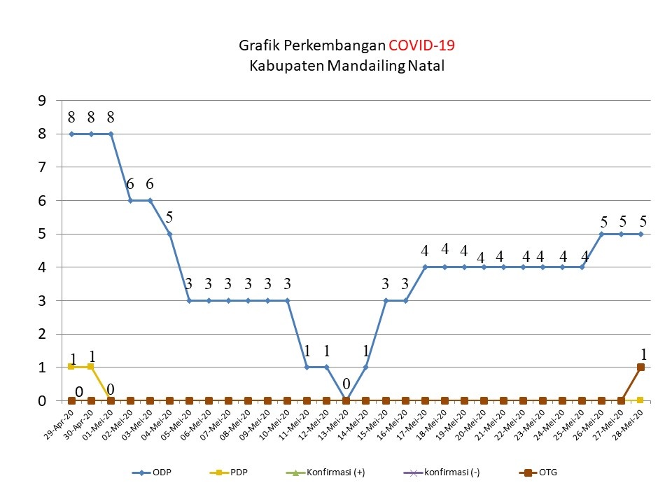 Lanjut Sahnan, dalam peta perkembangan tersebut juga terdapat 5 ODP, sementara itu PDP dan Konfirmasi (pasien positif covid-19) nihil. (MS)