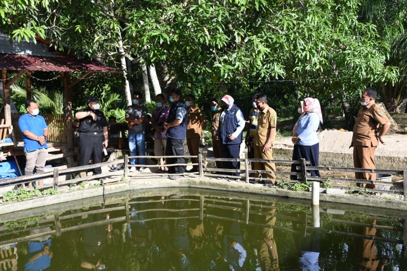 bbnewsmadina.com, Bupati Tapanuli Selatan (Tapsel), H Dolly Pasaribu, S.Pt, MM, bersama Plt. Kepala Dinas Perikanan setempat Sofyan Adil Siregar, meninjau kolam di peternakan Kelompok “Mina Lele” yang diketuai, Hermanto Sianturi, di Kelurahan Panobari Hutatonga, Kecamatan Tano Tombangan (Tantom) Angkola, Selasa (20/4). Peninjauan itu dilakukan setelah adanya kabar ribuan ekor ikan lele mati di kolam milik kelompok tersebut.