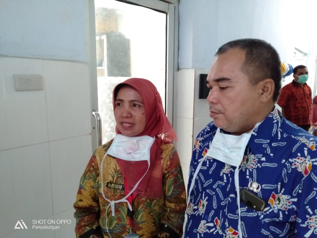 Direktur RSUD Panyabungan bersama Kadis Kesehatan Kabupaten Madina saat mempersiapkan ruangan isolasi di RSUD Panyabungan, Kamis (19/03). (Foto: MS)