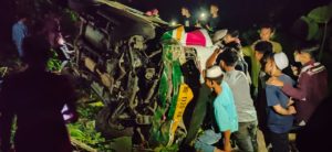 Mobil angkutan umum tersebut membawa penumpang sebanyak 24 orang itu terjungkir dan jatuh ke jurang. Dua orang penumpang meninggal dunia dan 22 orang mengalami luka-luka.