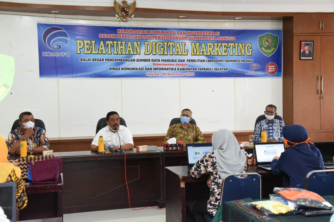Sebelumnya Kadis Kominfo Inganan Dalimunthe dalam laporannya menyampaikan, dasar pelaksanaan Bimtek Digital Marketing pada hari ini merupakan perjanjian kerjasama antara Pemkab Tapsel dengan Kepala Balai Besar Pengembangan SDM dan Penelitian Kominfo (BBPSDMP) Medan Kementerian Kominfo No. 134.4/8348/2019 dan 1039/BBPSDMP.MDN/KS.01.07/XII/2019 tanggal 20 Desember 2020 tentang Pengembangan SDM dan Penelitian Komunikasi dan Informatika.