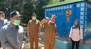 Tiba di lokasi Pjs. Bupati Madina langsung melihat bangunan sarana air bersih yang sudah selesai dibangun oleh Dinas Perumahan dan Pemukiman.