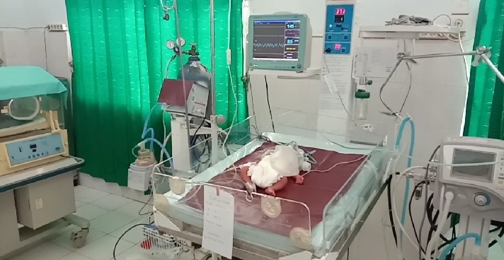 Seorang Bayi yang lahir tanpa batok kepala kini dirawat insentif di RSUD Panyabungan, Rabu (03/03/21). Foto:MS