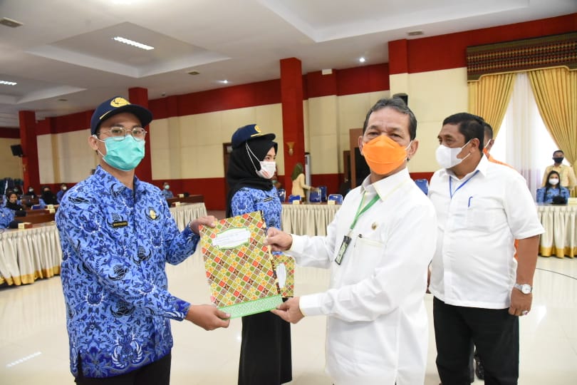 “Oleh karena itu, saya berharap kepada kalian semua untuk bekerjalah dengan sungguh-sungguh dan segera beradaptasi di lingkungan kerja kalian serta rajinlah mengakses informasi sesuai dengan tupoksi masing-masing,” ungkap Bupati.