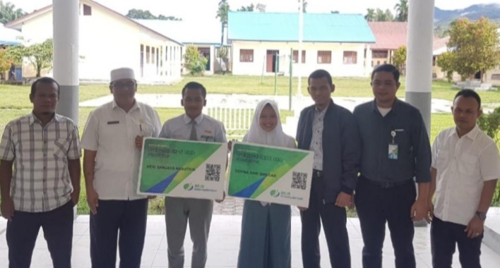 Penyerahan kartu peserta BPJamsostek secara simbolis kepada siswa magang atas nama Devina Sari Siregar dan Heri Sanjaya Nasution ini disaksikan langsung oleh Kepala Sekolah SMKN 3 Madina, Henri Sultoni, MM serta Wakil Kepala Sekolah, Ahmad Zubeir Hasibuan, S.Pd.