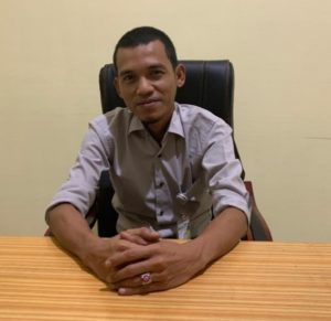 Kepala BP Jamsostek Madina, Fachri Idris saat dikonfirmasi Andalas diruang kerjanya, Rabu (22/1). (Foto:LBS)