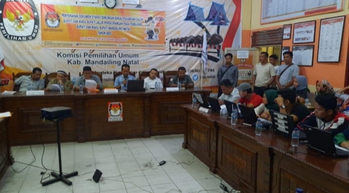 bbnewsmadina.com, Komisi Pemilihan Umum Daerah Kabupaten Mandailing Natal (KPUD Madina) setelah melakukan pemeriksaan berkas syarat pencalonan jalur perseorangan Bakal calon (balon) Bupati dan wakil Bupati 2020 – 2024, Idris – Imran. Akhirnya memutuskan untuk menolak berkas syarat dukungan bakal pasangan tersebut dengan alasan tidak mencukupi batas minimal yang di tetapkan peraturan PKPU, Rabu (26/2) malam.