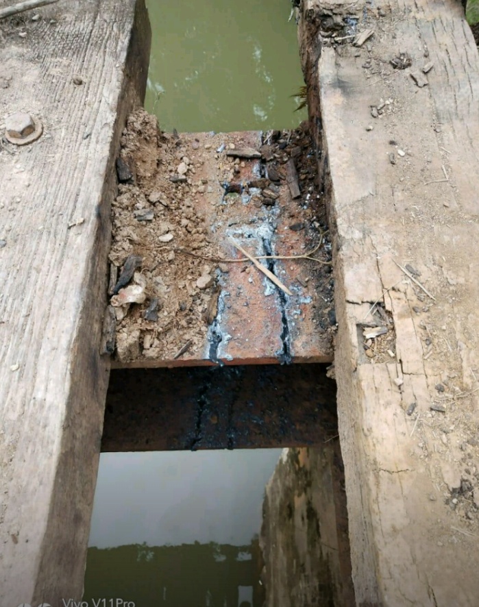 Foto : Kondisi sasis jembatan Caroce Tandikek terlihat rusak karena sudah di las dan tidak bisa di lewati masyarakat karena rawan ambruk. (LBS)