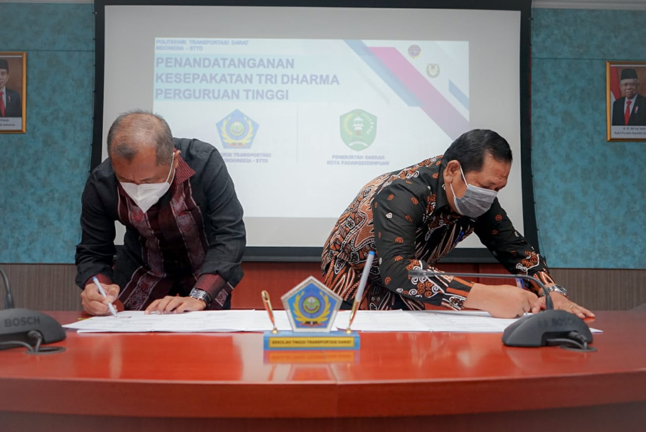bbnewsmadina.com, Pemerintah Kota Padangsidimpuan melakukan penandatangan nota kesepakatan dengan Sekolah Tinggi Transportasi Darat (STTD) sebagai wujud mitra dalam pelaksanaan Tri Darma perguruan tinggi di Kota Padangsidimpuan.