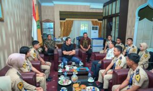 Wali Kota Padang Sidempuan Irsan Efendi NasutionSH menerima silaturahmi Taruna dan Taruni Sekolah Tinggi Transportasi Darat (STTD) Bekasi, Kamis (16/6) di ruang kerja Wali Kota. (Foto:Ty)