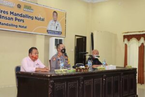 Kapolres Madina, AKBP. Muhammad Reza Chairul Akbar Sidiq, Sik, SH, MH ketika menggelar acara temu ramah dengan wartawan diaula Gesat Gatra Polres Madina, Kamis (30/12/2021) siang. (Foto: istimewa)