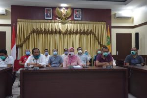 Wali Kota Irsan Efendi Nasution didampingi tim dokter Covid – 19 Padangsidimpuan saat conferensi pers di Aula Kantor Wali Kota,Minggu (19/4)