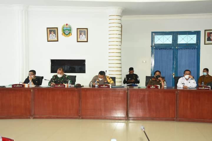 bbnewsmadina.com, Forum Koordinasi Pimpinan Daerah (Forkopimda) Plus Kabupaten Mandailing Natal (Madina) melakukan rapat evaluasi kegiatan penanganan dan pengendalian penyebaran Corona Virus Disease 2019 (Covid-19) sesuai dengan Inmendagri nomor 40 tahun 2021 tentang Pemberlakuaan Pembatasan Kegiatan Masyarakat (PPKM) level 4 di aula Kantor Bupati, Senin (20/9/2021).