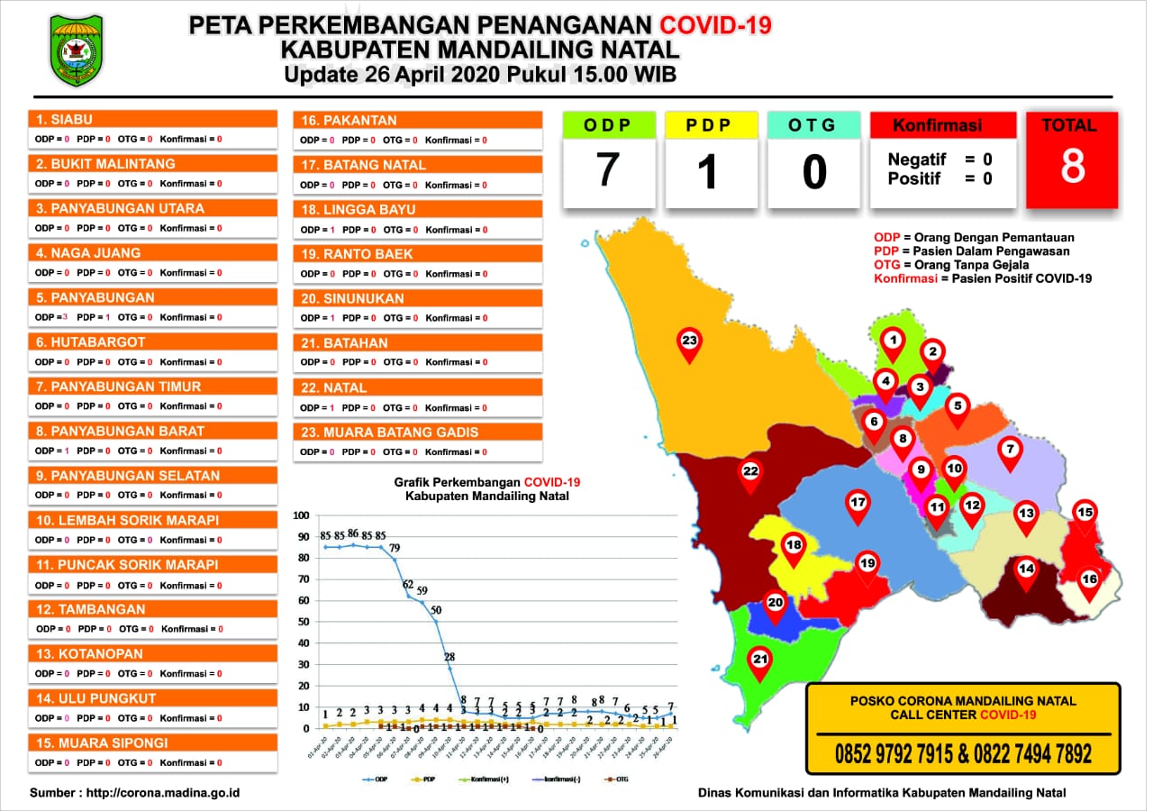 Peta Perkembangan Penanganan Covid-19 Madina per Tanggal 26 April 2020. (Foto: Diskominfo Madina)