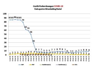 Data dari Tim Gugus Tugas Covid-19 Madina melalui Kadis Kominfo, Sahnan Pasaribu mengatakan bahwa 1 orang Pasien Dalam Pengawasan (PDP) yang berada di RSUD Padangsidimpuan sudah selesai masa perawatannya, dan berdasarkan hasil uji Swab pasien negatif covid-19.
