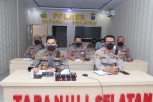bbnewsmadina.com, Kapolres Tapanuli Selatan (Tapsel), AKBP Roman Smaradhana Elhaj, SH, SIK, MH, bersama PJU mengikuti video conference (Vidcon) analisa dan evaluasi (Anev) terkait situasi Kamtibmas terkini, Jumat (13/5/2022) siang.