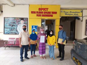 Korban bersama orangtuanya didampingi penasehat hukum dan perwakilan Dinas PP & PA setelah membuat laporan ke Polres Padangsidimpuan, Jum’at (30/07/21). (Foto:Ty)