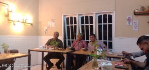 Wakil Ketua DPRD Sumut Harun Mustafa Nasution didampingi Anggota DPRD Sumut Fahrizal Efendi Nasution bersama insan pers saat ngobrol santai di Home Coffe Panyabungan, Rabu malam, (10/11/21). (Foto:DN)