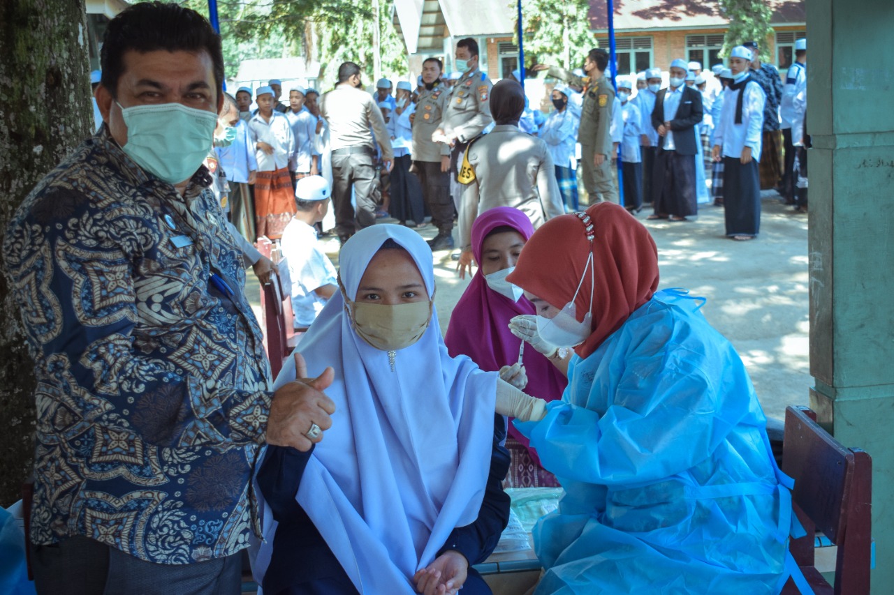 bbnewsmadina.com, Wakil Wali Kota Padangsidimpuan Arwin Siregar pimpin giat monitoring Vaksinasi Santri Pondok Pesantren se-Kota Padangsidimpuan, Kamis (23/9) yang dipusatkan di Pondok Pesantren Al Ansor Desa Manunggang Julu Kecamatan Padangsidimpuan Tenggara.