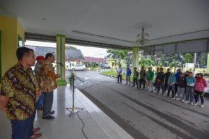 Wali Kota Padangsidimpuan Irsan Efendi Nasution, SH saat berangkatkan atlet Karate ke Kejurda Karate se Sumatra Utara dari Kantor Walikota, Jumat (6/3).