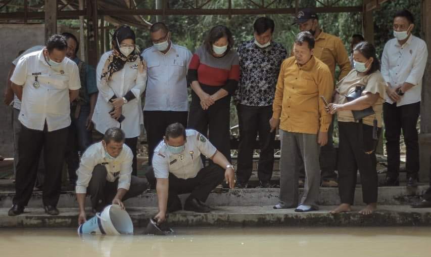 bbnewsmadina.com, Wali Kota Padangsidimpuan Irsan Efendi Nasution, SH tabur bibit ikan lele di Kelurahan Batunadua Jae, Sihoring-koring Kota Padangsidimpuan, Rabu, (15/09/21).