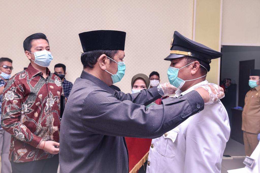 Wali Kota Padangsidimpuan Irsan Efendi Nasution,SH Lantik 60 ASN termasuk Camat Padangsidimpuan Batunadua Robiul Harahap di Aula Kantor Walikota setempat, Jumat (19/2). Foto:Ty