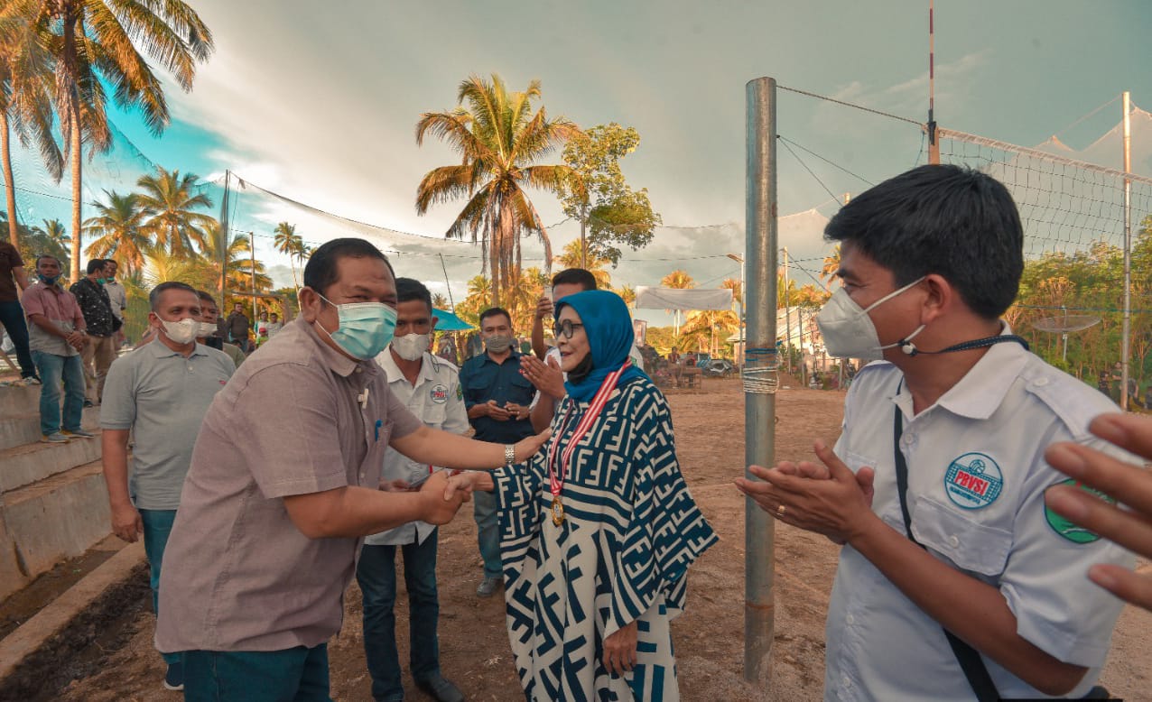 Wali Kota Padangsidimpuan Irsan Efendi Nasution SH saat membuka turnamen Bola Voli PBVSI Cup 2021 dilapangan Desa Joring Natobang, Kecamatan Padangsidimpuan Angkola Julu, Sabtu (02/10/21). (Foto:Ty)