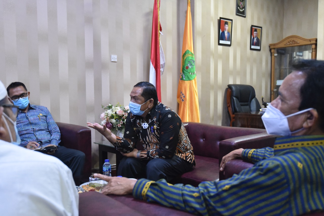 Wali Kota Padangsidimpuan Irsan Efendi Nasution,SH saat menerima audensi Rektor UGN Padangsidimpuan, Mohd Arifin Lubis dan Ketua LPPM (Lembaga Penelitian dan Pengabdian kepada Masyarakat) UGN Padangsidimpuan Drs. Nggelem Ginting beserta rombongan di ruang kerjanya, Kamis (29/7). (Foto:Ty)
