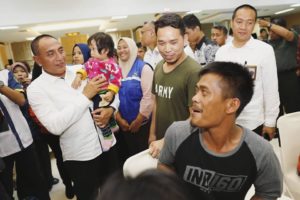 Gubernur Edy Rahmayadi bercengkrama denga warga Sumut yang terkena bencana sosial di Wamena.(Foto : Istimewa)